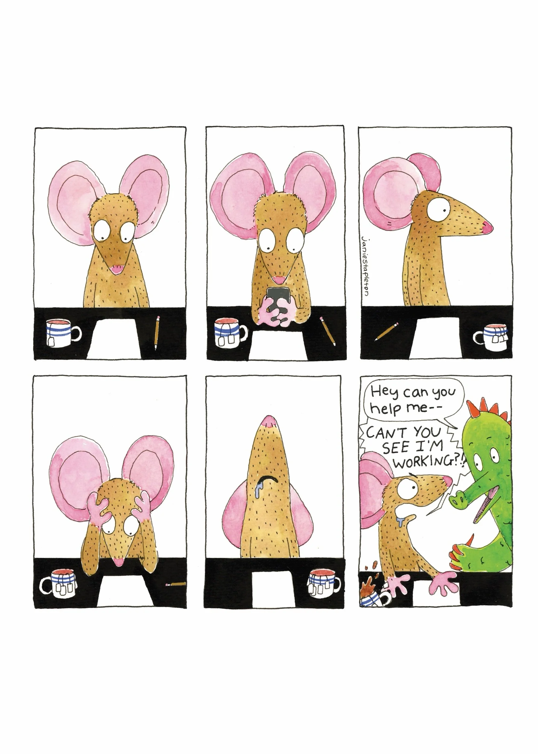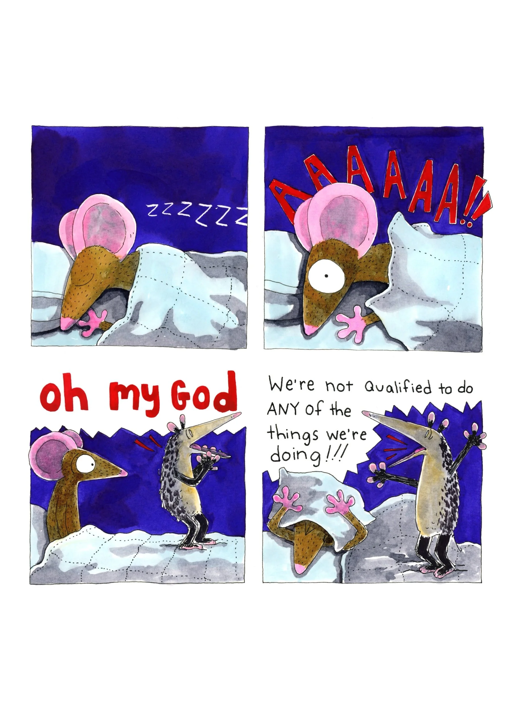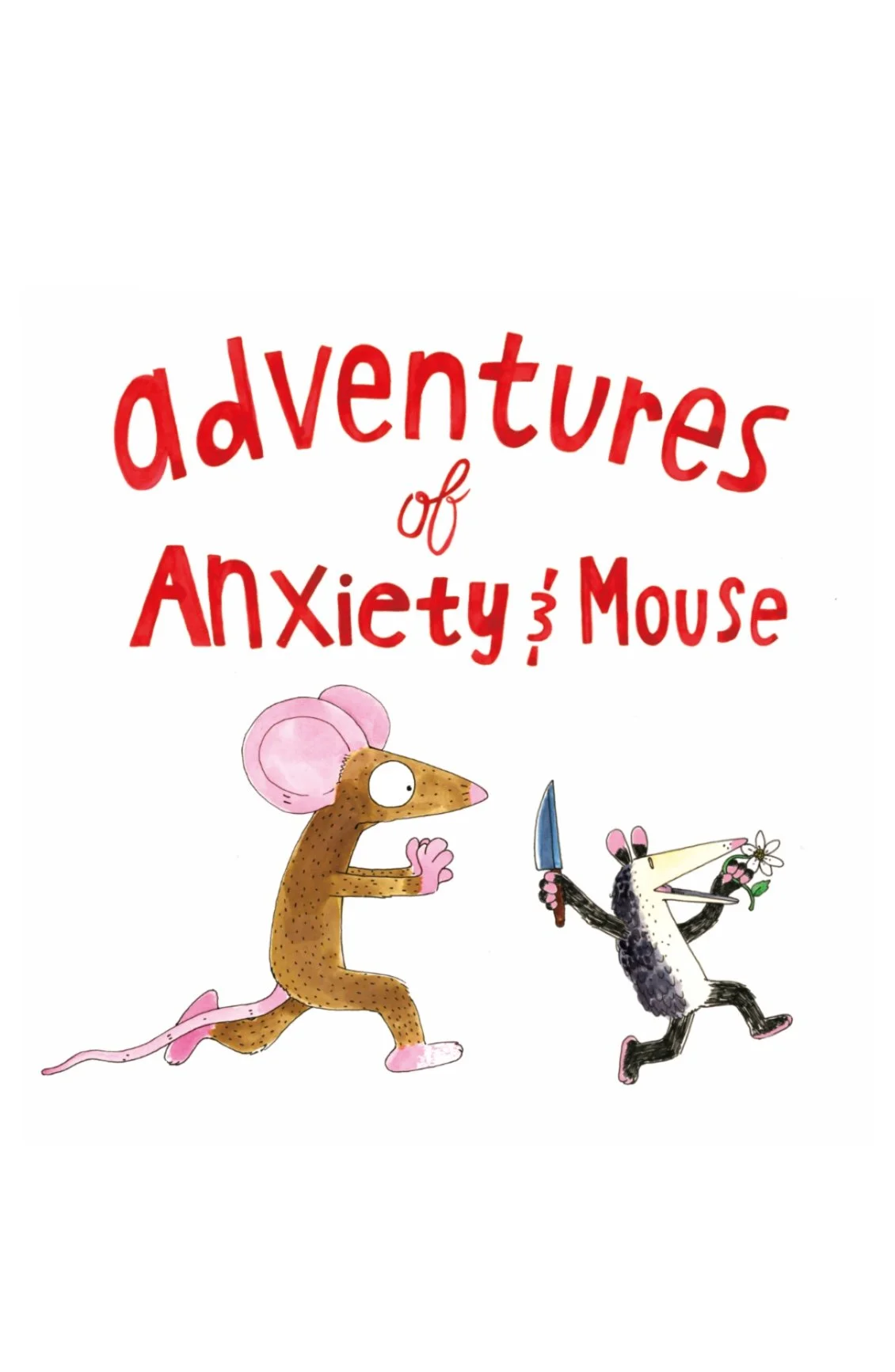A hardcover copy of all the comics from Adventures of Anxiety and Mouse, a comics project from 2020.